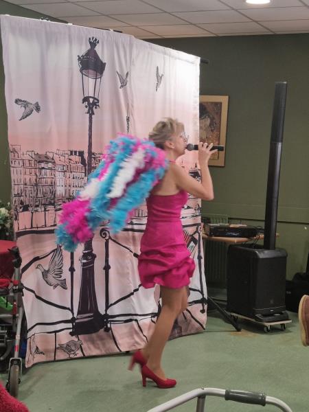 Grâce à son dynamisme communicatif et à ses changements de tenues réguliers, l’artiste a su apporter une touche de spectacle supplémentaire et entraîner les résidents dans une ambiance joyeuse et conviviale.