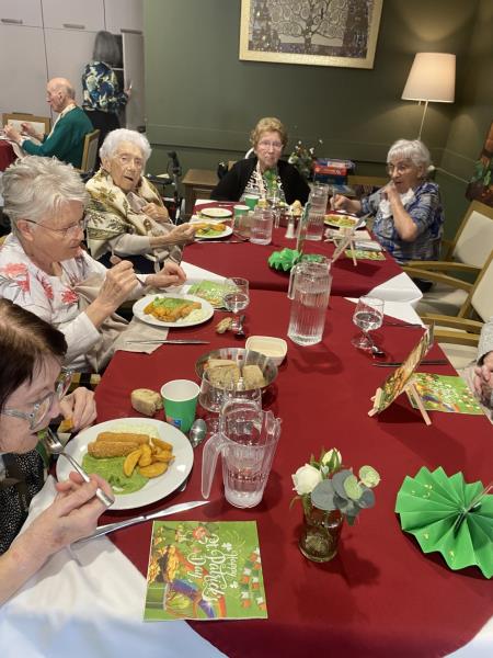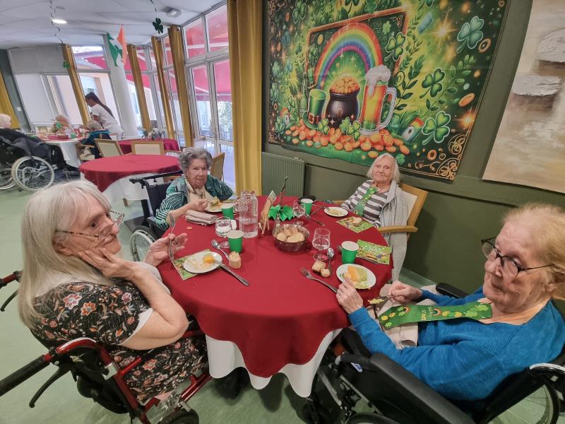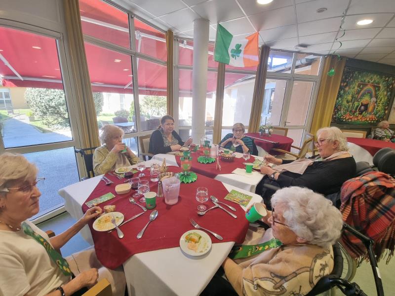 Le déjeuner, préparé par les cuisiniers de la résidence, était lui aussi placé sous le signe de l’Irlande. Les tables, décorées pour l’occasion, ont permis de prolonger l’ambiance festive et de partager un agréable moment autour du repas.
