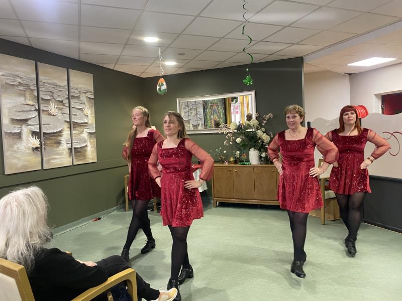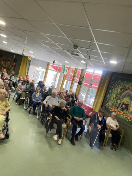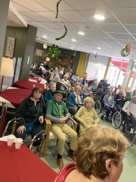 Tout le monde a joué le jeu : résidents, familles et membres du personnel ont participé à la fête en portant du vert, couleur emblématique de la Saint-Patrick. Une belle façon de partager ensemble ce moment convivial.