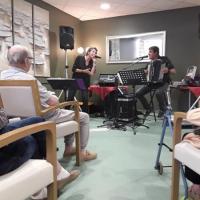Publiée le 07/08/2018Samedi 4 août les résidents de la Triade ont pu chanter et même danser avec "Nanou et Philou" lors d'un thé dansant organisé pour l'après midi. Un air de guinguette grace à l'accordéon de Philou nous a ramené à l'époque des valses, des tangos et des bals populaires! Lire la suite