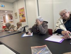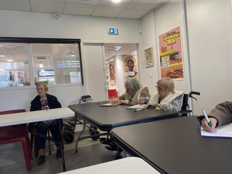 Les résidents ont été accueillis dans un cadre convivial et stimulant. Installés autour des tables, chacun a pu participer à son rythme à la dictée, favorisant la concentration, la mémoire et le plaisir d’écrire. L’activité a suscité un bel engagement, avec une attention soutenue et des échanges spontanés autour du texte proposé.